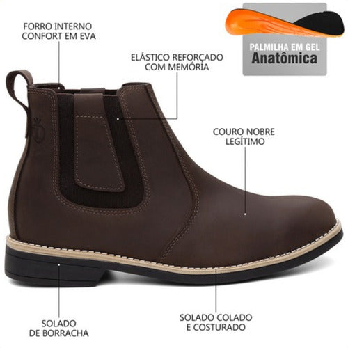 Eleve seu estilo com a Bota Chelsea de Elático Masculina em Couro Legítimo, a combinação perfeita de sofisticação e conforto. Com um design moderno e atemporal, esta bota se destaca pelos seguintes atributos: